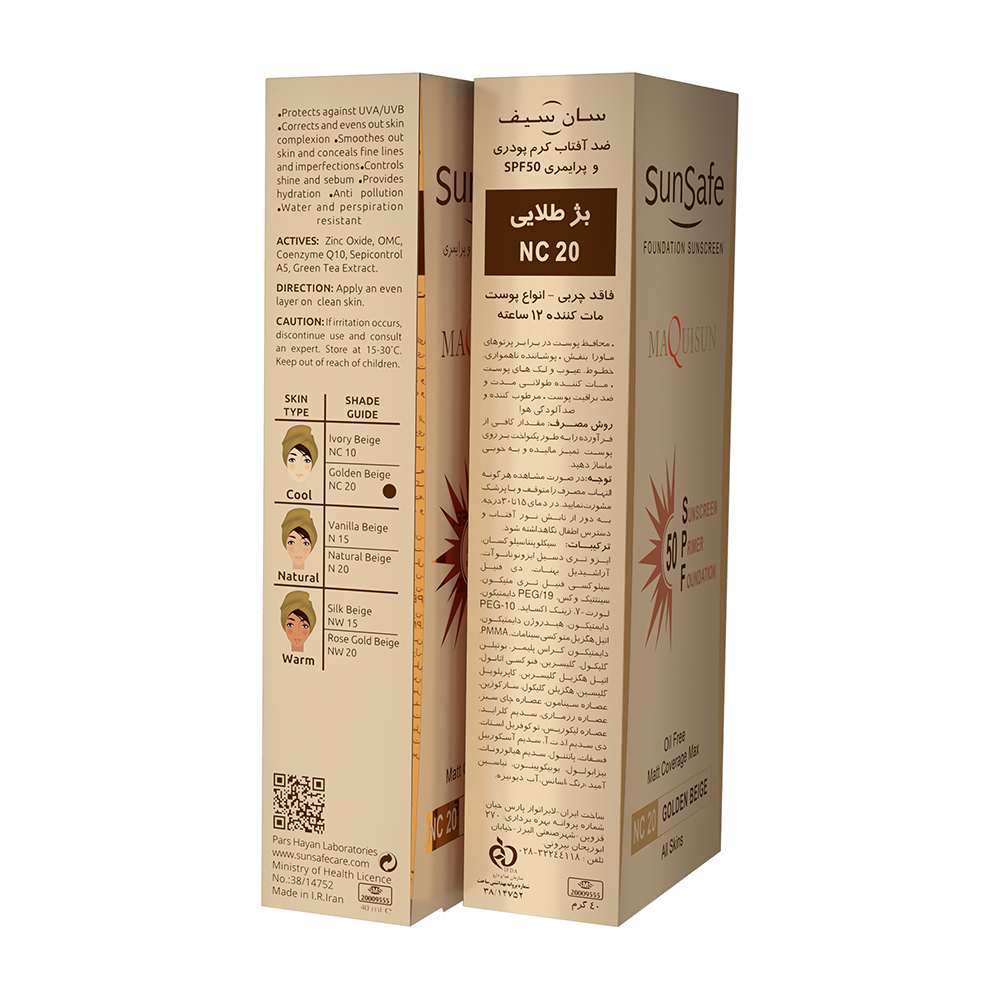 کرم ضد آفتاب سان سیف مدل Maquisun با SPF50، یک محصول چندکاره برای محافظت، پوشش و زیرسازی آرایش است. این کرم با رنگ بژ طلایی و تناژ NC20، مناسب پوستهای سرد و چرب بوده و بافتی سبک، فاقد چربی و ماتکننده دارد. فرمولاسیون آن حاوی عصارههای گیاهی مانند چای سبز، رزماری، دارچین و شیرینبیان است که خاصیت ضد التهاب، ضد آلودگی و آنتیاکسیدانی دارند. وجود پرایمر در ترکیب محصول باعث افزایش دوام آرایش و یکنواختی سطح پوست میشود. این کرم با پوشانندگی بالا، لکها و ناهمواریهای پوست را محو کرده و ظاهری طبیعی و یکدست ایجاد میکند.