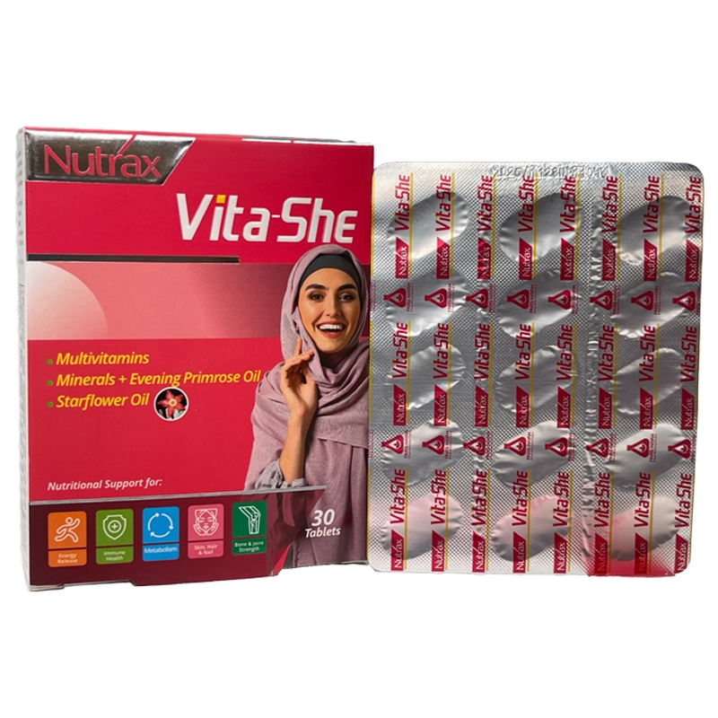 قرص وایتا شی نوتراکس یک مکمل تغذیه‌ای تخصصی برای بانوان است که با ترکیبی از ویتامین‌ها، مواد معدنی و عصاره‌های گیاهی فرموله شده تا نیازهای روزانه زنان را تأمین کند. این محصول با دارا بودن روغن گل گاو زبان، روغن گل مغربی، بیوفلاونوئیدهای مرکبات، ویتامین‌های گروه B، زینک، آهن و سلنیوم، به تقویت سیستم ایمنی، افزایش انرژی، حفظ سلامت پوست، مو و ناخن، و کاهش خستگی کمک می‌کند.