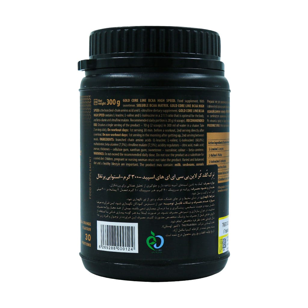 پودر بیسیایای ترک نوتریشن مدل High Speed از سری Gold Core Line، یک مکمل ورزشی حرفهای است که با ترکیب آمینواسیدهای شاخهدار (BCAA) شامل لوسین، ایزولوسین و والین، به رشد عضلات، افزایش انرژی، کاهش خستگی و جلوگیری از تحلیل عضلانی کمک میکند.